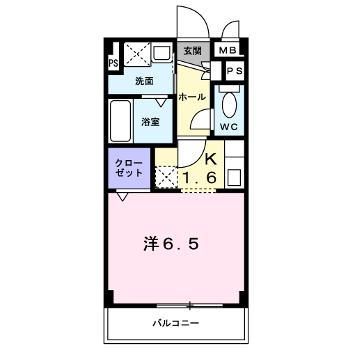 間取り詳細 1K・1R(洋6.5、K1.6) 面積 25.12㎡